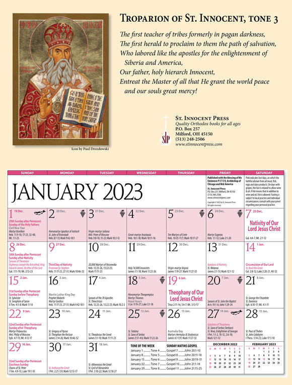 2023 Orthodox Wall Calendar – St. Innocent Press